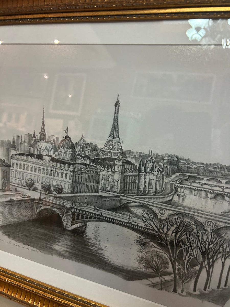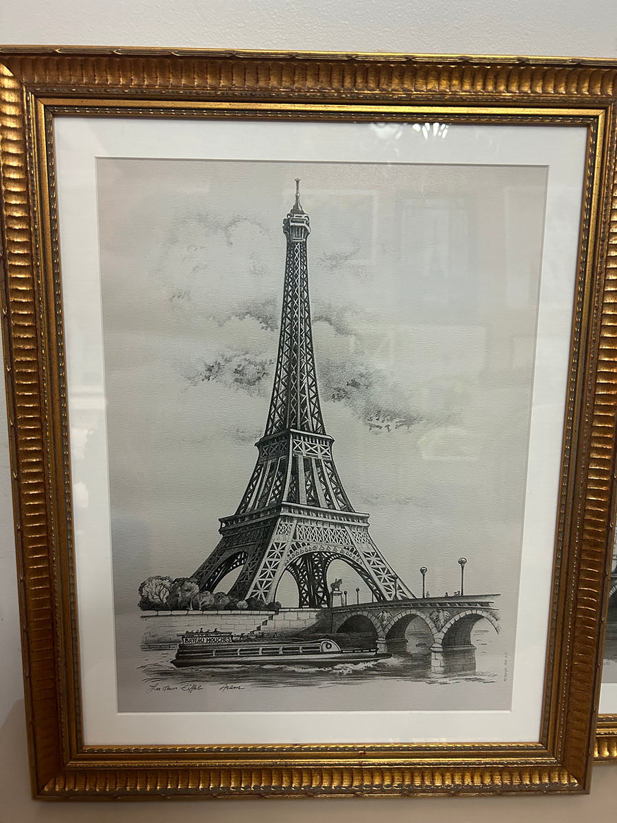 Framed Print of Eiffel Tower and Pont Alexandre III Sketch